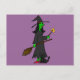 En hemsk grönt kvinna. Hon rider och bajom och äger en svart katt.