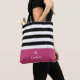 Ett modernt vågrät rand mönster hade en svart och vit säck med en djup rosa. Anpassa genom att lägga till ditt namn under logotypen för återställ daisy för chic.