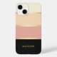 En modern Fodral-Mate iPhone 14 Fodral med namn iPhone i klassy och snyggt med bred färgstark och guld strimlad design med färg av kräm, persika, och svart från Chef Girl Chic. Anpassa enkelt detta monogram fodral med ditt eget namn för att göra det till ditt eget.