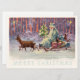 God jul från Wien Skogen! Tomtens lilla själ dras genom en snöskog av två ömtåliga renar. Scenen är full med ljus från det lilla resande Julgran. Coral, lavender och aqua färg i abstrakten mönster skapar en underbar teaterbakgrund. Denna antika europeiska illustration har på ett skickligt sätt gått igenom tiden för att dekorera vår 2000-talskorrespondens och våra gåvor. Trendiget färg och den unika bilden är perfekt för dina helgdag.