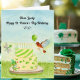 This charming hand-painted watercolor St. Patrick’s Day birthday card features a vanilla birthday cake decorated with green and white shamrocks and carnations, glowing birthday candles, and playful details throughout. A European robin flies overhead carrying a small green balloon a beloved Irish symbol of renewal, hope, and good fortune while a red-eyed tree frog peeks from behind the cake to represent luck and joyful growth. A delicate dragonfly carrying a shamrock completes the scene, symbolizing light, positivity, and change. Designed especially for your wife, this keepsake card celebrates a St. Patrick’s Day birthday with meaning, warmth, and a touch of Irish charm.