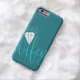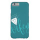 Cute cyan iPhone6-väska med vassla skriven i ett turkoskript över hela grund. En vit diamant pekar på i.