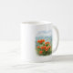 This ceramic mug features a delicate illustration of vibrant wild azaleas in bloom, set against the soft layers of misty mountains reminiscent of northern Japan. The warm orange petals contrast gently with the cool greens and blues of the distant hills, creating a balanced and serene composition.