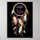 En affisch med svart bakgrund och på den en stor Drömfångare med Wild & Free skrivet i mitten av ramen.