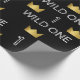 Detta Wild One Första Födelsedag Inpackningspapper har en guld krona, perfekt för en Wild One eller King of All Wild Things födelsedagstema.