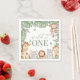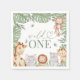Bring the jungle to your table with this adorable Wild One napkin! Featuring watercolor safari animals — giraffe, elephant, lion, monkey, tiger, and hippo — surrounded by tropical leaves. Perfect for a Wild One first birthday, jungle safari, or animal-themed baby shower. Coordinates beautifully with matching Wild One party invitations, thank you cards, and decorations.