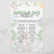 Wild One Safari Would She Rather Baby Shower-spel