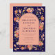 Elegant Wildblommans marktyrka blå orange, terracotta och peach fall bröllopsinbjudan. Den här fantastiska inbjudan till Bho chic blommigt-bröllopet är en häpnadsväckande blandning av autumnal värme och elegant charm. Med handmålade, vattenfärgade vilda blommor runt en elegant båge visas en rik färg palett med bränd orange, bränt antal, korall, orange, brun, gult, grönt, terakotta, koral, lila och rosa. De varma örhänta tonerna skapar perfekt harmoni och skapar det som ett perfekt val för ett fallbröllop. Skriptet om elegant och den moderna typografin ger en aning sofistikering, medan vattenfärgerna för den vita blomman runt bågfönstret tillför en personlig, bohemisk fläkt till alla dina viktiga bröllop-detaljer. Designad av den begåvade konstnären Catherine Sweetman är denna unika inbjudan ett uttryck för en mysigt, intim firande mitt i hösten. Med lättanpassade mallar kan du på ett smidigt sätt förmedla din bröllop-information till stil och konst, inklusive en QR-kodmall för onlinens OSA för dina gäster på webbplatsen. Bakgrunden i en rik marin blått och fyll på en varm varma varm som gör att de vackra blommigtarna lever på ett sätt som känns både friskt och tidlöst.