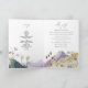 En vacker vildblomma och bröllop-bergsdesign. En unik design som användor vattenfärgen vildblommans botaniker och ett vattenfärgsbergslandskap i bakgrunden. En modern blommigt för vild med berg och floder vid sjöar. En elegant bröllop-ordning för serviceprogram med modern inslag. Det finns också möjlighet att matcha bröllopsinbjudningar och andra artiklar i kontorsartiklar.