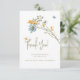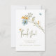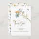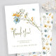 Fintvätt av vilda blommor med smörblommor och pastellfärgad blommigt blåser elegant chic vår eller sommarträdgård kärlek i blommande möhippa tack vare att du kort med det vita trendiget med moderna kalligrafskript över en vit bakgrund. Wildblomma mönster på baksidan.