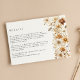Fyll i din bohos-inspirerade bröllop-sensemble med vårt Wildblomma Cream Boho Blommigt Bröllop-inhägnadskort. Kortet för denna bilaga tillför en smula elegans till din inbjudan. Perfekt för att vidarebefordra ytterligare information eller speciella meddelanden till gästerna med stil och nåd.