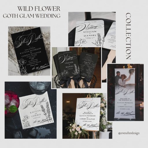 Denna inbjudan till Wildblomma Elegant Gothic Wedding är perfekten till gästerna i inbjudan till en elegant som inspirerade bröllop. Mörken färg, skript och vildblomsdesign är ge all sagda elegant och glamorös essens.