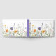 Den här designen har en färglös gräns av vildblommor med vattenfärg i skuggor av lila, guld, grönt och blått.