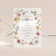 Inbjudningskort för möhippan med en krans av vildblommor och grönblommor med vattenfärg. Anpassa med informationen eller klicka på "klicka för att anpassa ytterligare" för att justera teckensnittstypen, storlek, färg.