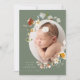 Den här eleganten och det moderna lodrät för bildfödelseattest för klassiska snyggtar är ett dubbelsidigt kort för dubblor som innehåller ett ovalt utstrykningsfoto av din nyfödda flicka och vackra botaniska gröna blommigtar som ger babyen bild. Anpassa det här fotokortet med ditt anpassningsbar-meddelande från familjen (mor, far, syskon om du vill) som kan vara personlig på baksidan med vilket tackmeddelande eller citat som helst från de nya föräldrarna. Det finns också ett andra vågrät-foto på baksidan. Det här baby-annonskortet har en färg-palett i färgtoner med färgtoner i vintage, grönt, gult, blått och rosa.