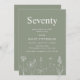 Vuxen på födelsedagsinbjudningar | Wildblomma Blommigt 70:e födelsedagen Den här Eleganten har blommigt för vit färgad boho botaniska vilda blommor Skript Rustic typography on Sage Grönt bakgrund. Anpassa inbjudan med dina detaljer och om du vill ordna om stil och placera texten ytterligare trycker du på knappen "Klicka för att anpassa ytterligare". För fler produkter inom samma tema, besök min butik: Youtopia Officiell.