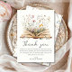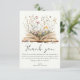 Tack för dina duschgäster med vår charmerande Wildblomma Bok Theme Baby Shower tack vare dina kort! De här korten är perfekten för att ge dina gäster veta hur mycket du uppskattar dem. De har en härlig bok som är utmärkt med vilda blommor i benvit bakgrund och vildblommor bakåt. De är lätta att anpassa och har "Tack" utskrivet i elegantens skript.