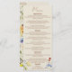 Ta med lite blommigt elegans till din mottagning med den här vildblomman-middagsmenyn i bröllop. Designad med delikata vattenfärgsblommor längs grund och mjuka skriptaccenter, kompletterar den här menyn teman om rustika, trädgård och bröllop på landsbygden. Visning vid varje gästs inställning till ställe eller använda på buffet bord för att på ett klokt sätt presentera din bröllop-måltid.