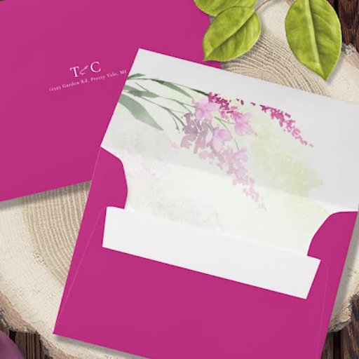 Den här samlingen i elegant bröllop användor en slående färg palett, inklusive fuchsia fedora, kalkgrönt och bomullskandy rosa, för att skapa matchande kontorsmaterial och party för din speciella dag. Handskript parad med ett klassiskt serif-teckensnitt ger en modern beröring. Den omgivande etiketten för bröllop, som visas här på en fuchsisk bakgrund, innehåller en mall som gör att du enkelt kan lägga till namn, datum och returadress för bröllop. Sök i ID954 om du vill se andra delara och färg-alternativ för den här uppsättningen.