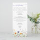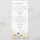 Den här designen har en färglös gräns av vildblommor med vattenfärg i skuggor av lila, guld, grönt och blått.