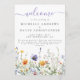 Den här designen har en färglös gräns av vildblommor med vattenfärg i skuggor av lila, guld, grönt och blått.