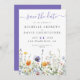 Den här designen har en färglös gräns av vildblommor med vattenfärg i skuggor av lila, guld, grönt och blått.