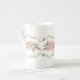 Det här vackra mugg har en ömtålig vindruv gräns på toppen och grund med rosa vilda blommor som rinner genom mitten. Färger omfattar grönt, rosa och brun.