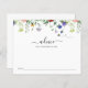 Möhippans aktivitetskort innehåller vildblommor med vattenfärg, grön färg och ett buzzingbin. Råkort uppmanar gästerna att ge råd till bruden.