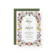 En ram som är full av en vacker, färglös vilda blommor ge den här bröllopsinbjudan svit en rustik, boho vibe.