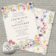 Inbjudan till Wildblommor Rustic Landsbyggsbröllop Flowers. Wildblommor fångar en kulturlandskapets charm och skönhet firande med sin naturliga, återhållsamma estetik. Inbjudan är försedd med en delikat vattenfärgad illustration av vilda blommor i mjuka nyanser, som påminner om en sol-kyld ängsskugga. Blommorna glatt ram kant på inbjudan med sin skönhet.