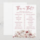 Wildblomma den ena eller den som känner till Möhippans spel. Lägg till lite roligt och upphetsning i möhippan med det här spelet "Vem känner till det bästa"! Testa gästernas kunskaper om den blivande bruden med att ta upp "den ena eller den andra" stil-frågor, som täcker allt från bröllop preferenser till smekmånadsdrömmar. Perfekt för livliga sammankomster och skapande av varaktiga minnen! Fullständigt anpassade - du kan ändra någon av frågorna till kostym till din händelse! Kontakta oss på cedarandstring@gmail.com om du behöver hjälp med designen eller matchande produkter.