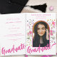Fira din dotters högskola, universiteten eller high school studenten med detta pulserande färgstarka Wildblomstersommarboho-inspirerade studenten-annonskort. Den här designen har en kalligrafi med livliga shock rosa och en vismisk vattenfärgad vilda blommor runt en student-fotobågsmall. Den fångar upphetsningen från nya början och glatta firande. Anpassa den med ett omhuldat foto av student med hjälp av den lättåtkomliga fotomallen och markera händelseinformation i bedövande typografi. Designad av konstnären Catherine Sweetman, kombinerar denna unika inbjudan på ett utmärkt sätt naturens charm med hur glad din dotters prestation är, skapar den det idealiska sättet att samla nära och kära och markera denna speciella milstolpe.