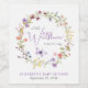 Elegant vin-etikett för flicka-duschen med "lite vildblomma är på väg" i modern grått-typografi och ett chic lavender lila-skript, en boho-inspirerad vattenfärgsutandning av lila, rosa, persiko- och gult-vilda blommor och en lila-fjäril. Lägg till mor namn och duschdatum i enkel lavender- och grått-typografi.