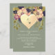 Gör ett djärvt och romantiskt påstående med den här bröllopsinbjudan för vildblommor, med en blommigt med lush-vattenfärg arrangemang i jeweltoner, mot en mjuk grönt. Det metalliska guld-hjärtmonogrammet tillför en elegant och lyxig beröring, som blandar rustik med modern luft. Perfekt för fallbröllop, trädgårdsodling firande eller naturinspirerade ceremonier. Fullt anpassade med bröllop och initialer.