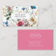 Ett sött, färglöst rosa och blått grönt vildblommor blommigt modernt minimalistiskt affärskort. Anpassa det med ditt namn, din webbplats och information för att göra det till din egen. Perfekt för vilket yrke som helst, inklusive skönhetstjänst, hårstilist, makeup artist, florist, influencer m.m.