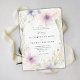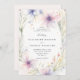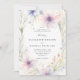 Fintliga vilda blommor och lush grey, målade i mjuk vattenfärg med tonerna lila, lavender, rosa och grönt, intertwine på ett skonsamt sätt mot en elfenbensvit bakgrund för att skapa en elegant blommigt ram för denna bröllopsinbjudan. Utformningen är en tidlös blandning av klassisk sofistikering och en lekfull charm av vilda blommor, perfekt för modern romantik. Idealiskt för ett vår eller sommar bröllop inbjuder detta kostym både den elegant boho briden och de som planerar en trädgårdsken, bakgården firande eller ett formellt evenemang i en château's trädgårdar. Ett vackert val för brudar som söker en liten bit av naturens stollig med finare elegans.