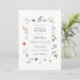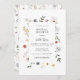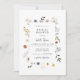 Modern boho-blomman inbjudningskort för möhippan med en blommigt vattenfärg ram med små vilda blommor och ett mönster på motsatt sida.