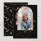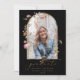 Ett söt studenten-annonskort med ditt foto i en bågform i guld ram med vildblommor och löv i rosa och grönt. Bakgrunden är svart. "student" finns i guld i det moderna kalligrafteckensnittet. Den omvända färgen har en mönster av vildblommor med vattenfärg.