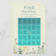 Hämta redo en bra med vår babyskor, Bingo Game! Den här charmeringsaktiviteten är perfekt för att lägga till lite roligt och upphetsning till babyduschen. Med vackra blåblå och grönt vildblommor kommer det här spelet säkert att ge firande glädje och skratt. - Varje gäst får en "hitta gästen" lakan, som har ett antal fyrkanter med ord på insidan som: "är lämnat" "gick till skolan med mamma" osv. -Varje gäst måste sikta på att matcha namn mot varje kvadrat. Det här kommer att få dina gäster att komma upp och mingla. -Målet är att få en fullt av namn fylld för att vinna. -Den första gästen som fyller i rad, kolumn eller diagonal och skriker "Bingo!" vinner ett fint pris!