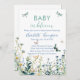 Vänner och familj i inbjudan för att fira ankomsten av ett sött baby med den här elegant inbjudan att duscha blomman från vår, som innehåller vildblommor med vattenfärg i nyanser av vrida blues och verdant grönt.