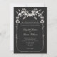 Fintliga vilda blommor och gräs intertwine över en boho arch för att bilda en underbar blommigt bröllop ram på denna moderna klassiska, formella, elegant svarta och vita bröllopsinbjudan med ett tema för vilda blommor. Den här blommigten är en elegant, tidlös design för den moderna romantiken och kombinerar det svarta och vita formella temat med det feminina och lekande vildblommorna estetiskt för perfektens blandning av sofistikerad elegant.