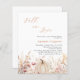 En elegant faller i Kärlek Inbjudningskort för möhippan. En vit bakgrund. Dekorerad med vattenfärgade vilda blommor i beige, rosa och en pumpa. 1 lakan = 1 inbjudan tryckt kant till kant.