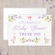 Tack vare den här babyduschen har du kort med snygga, vita vattenfärger med vilda blommor, lavender, daisy och söta gäss. Anpassa fronten med namn. Lägg till ditt tackmeddelande på kortets insida. Andra matchande babyduschprodukter finns också tillgängliga.