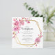 En förtjusande vattenfärgsillustration med vilda blommor från rosa och fuchsia på ett geometriskt ram av guld hexagon (digital effekt, inte riktig folie) dekorerar denna duschinbjudan från flicka som är perfekt för ett vår eller sommar firande. och rosa blommigtar intertwine, för en försiktig och söt inbjudan att fira din lilla vilda blomma på vägen.