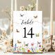 Wildblommor och Butterflies Bröllop Bordsnummer