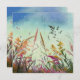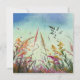 En vacker scen med levande och färgstarka vilda blommor i vinden framför ett blått och grönt himmel med stjärnor.