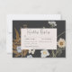 Lägg märke till bröllop med lite rustik elegans. Vårt inkapslade svarskort från bröllop med tre middagsval har en levande arrangemang av vilda blommor och ferns, noggrant handritad och påminner om pressade botaniska skatter. Rik färg som solbränna, gult, kräm, blått och sage grönt framträder med stor försiktighet mot en mjuk, svart kolbakgrund ram. Dina uppgifter om bröllop visas i en textruta med skarp kräm, vilket ger klarhet och elegans. Den här fängslande designen fångar kärnan i en vildblomma, och erbjuder ett unikt och minnesvärt sätt att fira din kärlek-berättelse. Skapat av Farmhouse Press.