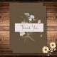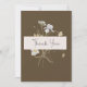 Lägg märke till bröllop med lite rustik elegans. Vårt fängslande tack från bröllop har en levande arrangemang av vilda blommor och ferns, som är noggrant handritad och påminner om pressade botaniska skatter. Rik färg som solbränna, gult, kräm, blått och sage grönt står vackert mot en rik chokladbrun bakgrund ram. Dina uppgifter om bröllop visas i en textruta med skarp kräm, vilket ger klarhet och elegans. Den här fängslande designen fångar kärnan i en vildblomma, och erbjuder ett unikt och minnesvärt sätt att fira din kärlek-berättelse. Skapat av Farmhouse Press.