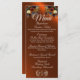 På framsidan finns buketter av vilda blommor i vackra höstbuketter på kopparbakgrund med menydetaljer och länkade löv monogram. Baksidan har en platshållare även för det länkade löv-monogrammet. Om du ändrar typsnitt kan du skapa mer elegant eller rustiskt utseende. Finns i flera färg för temat bröllop. Designad för samordning med Rustic Wildblommor & Ribbon Collection. Om du vill ändra information klickar du på "Anpassa". Om du vill flytta texten eller ändra texten storlekt, teckensnitt eller färg klickar du på "Klicka för att anpassa ytterligare"