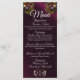 På framsidan finns buketter av vilda blommor i vackra sommartid i färg på en lila bakgrund med menydetaljer och tillhörande löv monogram. Baksidan har en platshållare även för det länkade löv-monogrammet. Om du ändrar typsnitt kan du skapa mer elegant eller rustiskt utseende. Finns i flera färg för temat bröllop. Designad för samordning med Rustic Wildblommor & Ribbon Collection. Om du vill ändra information klickar du på "Anpassa". Om du vill flytta texten eller ändra texten storlekt, teckensnitt eller färg klickar du på "Klicka för att anpassa ytterligare"